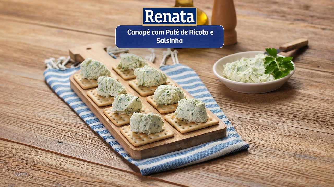Receita de Canapé com Patê de Ricota e Salsinha preparada com Biscoito Renata Cracker Fermentação Natural.