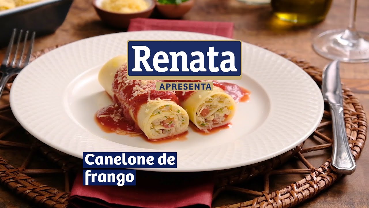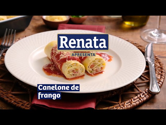 Canelone feito com Lasanha Grano Duro Renata recheado com frango e finalizado com parmesão.