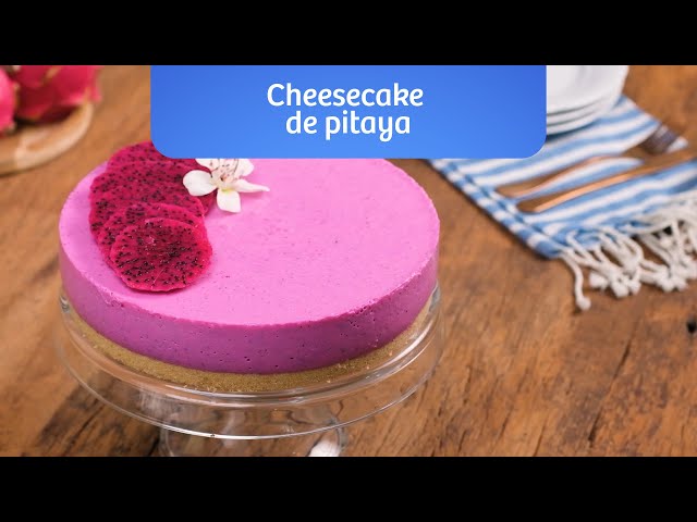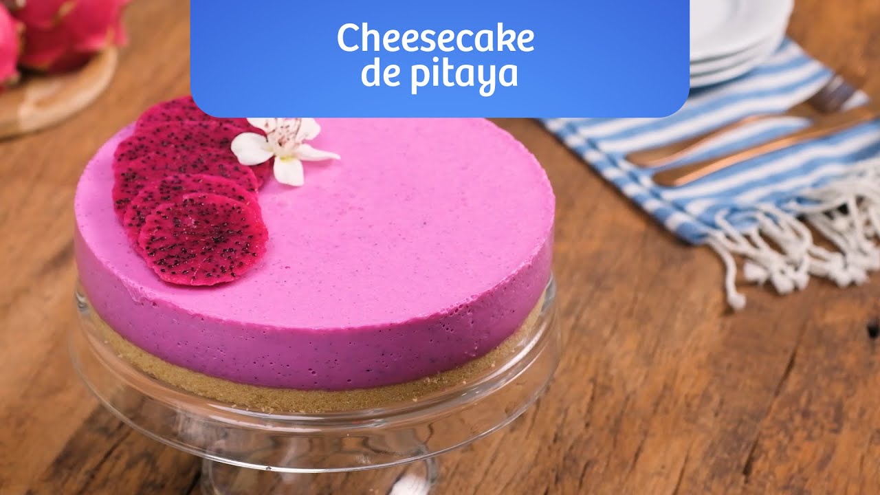 Cheesecake de Pitaya com massa feita de Biscoito RENATA Maizena.
