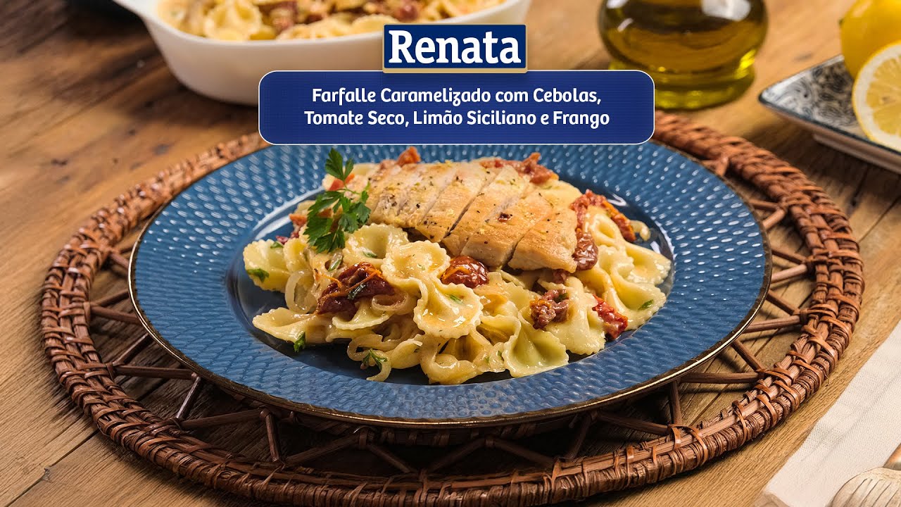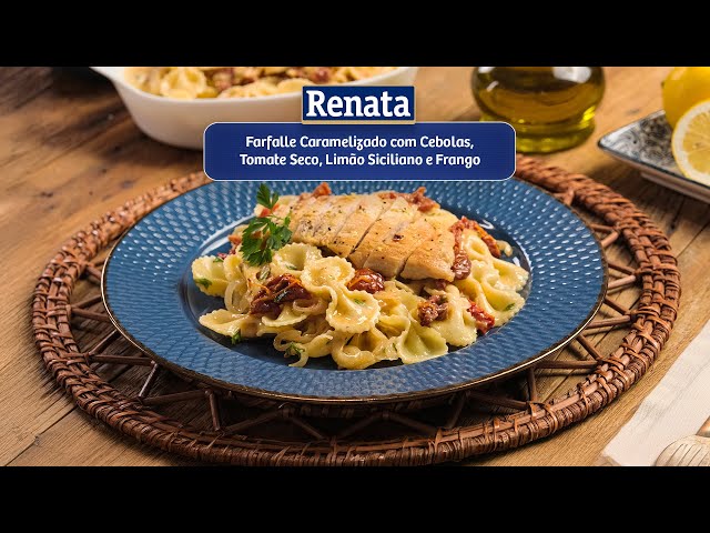 Uma combinação deliciosa de farfalle com cebolas caramelizadas e tomate seco, realçada pelo frescor do limão siciliano e acompanhada de frango suculento. Uma refeição perfeita para um jantar especial.
