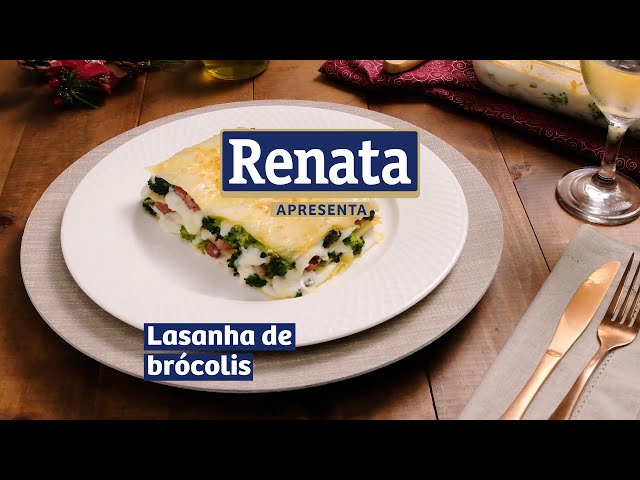 Lasanha preparada com Macarrão RENATA Grano Duro, com recheio de molho branco, brócolis e bacon.