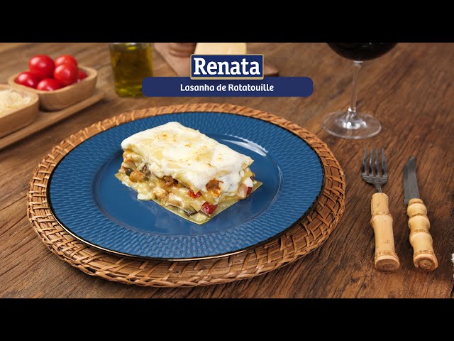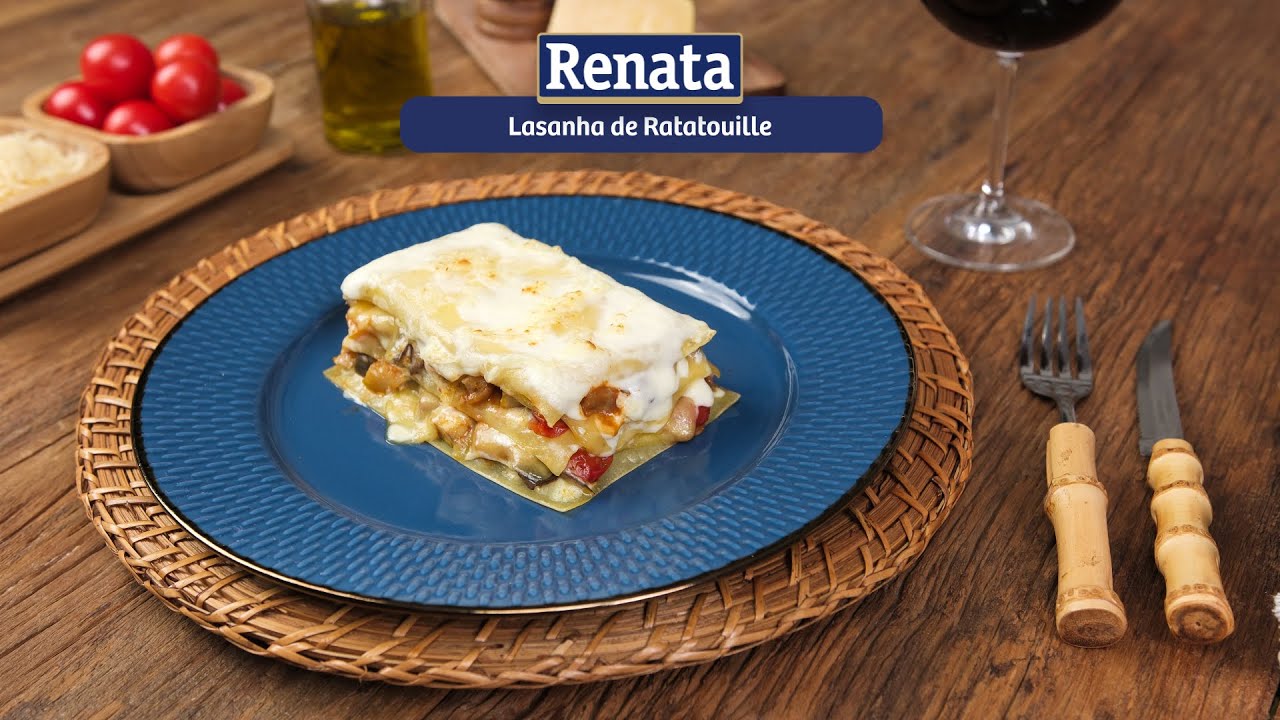 Receita de Lasanha de Ratatouille feita com a Massa Para Lasanha Renata Superiore Grano Duro, queijo, pimentão, abobrinha, tomate-cereja, berinjela e cebolas.