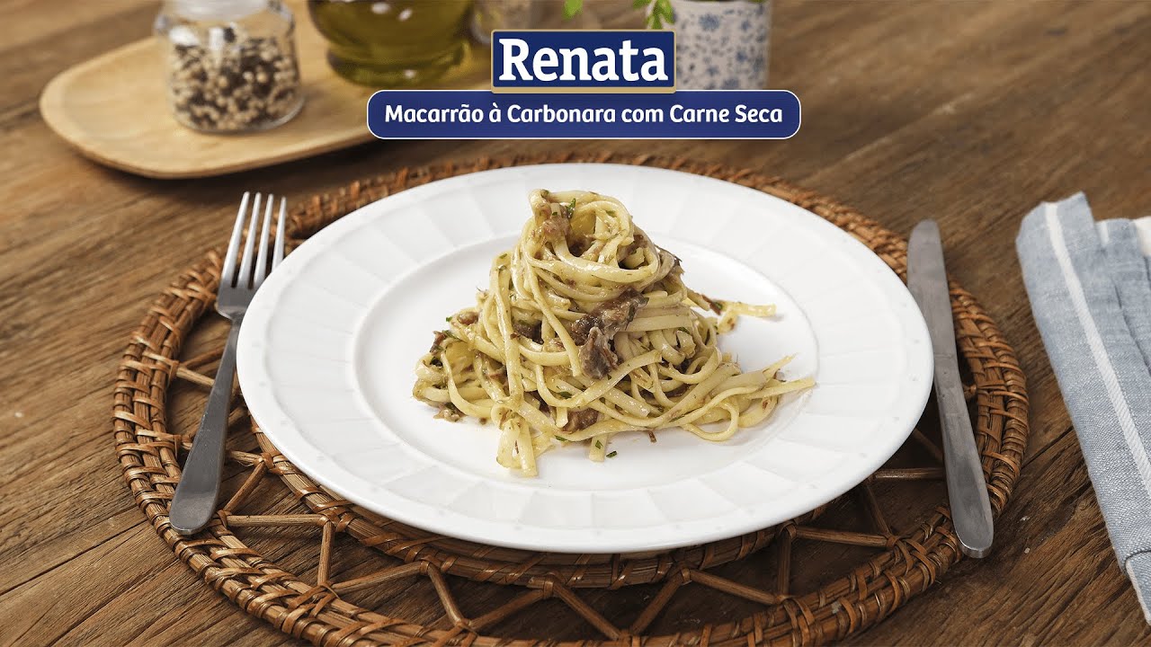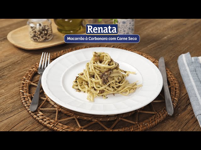 Receita de Macarrão à Carbonara feita com Macarrão Renata Linguine Grano Duro com Carne Seca