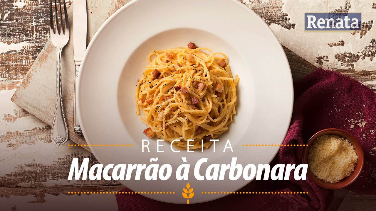 Macarrão Spaghetti RENATA Superiore com Molho Cremoso de Queijo, Ovos e Bacon (ou Pancetta) em Cubos.