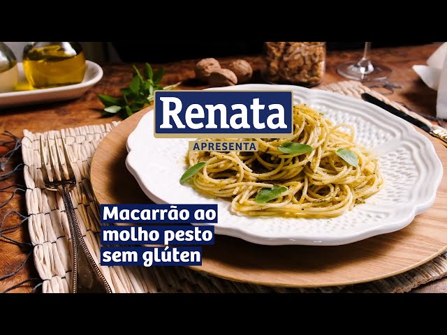 Macarrão RENATA Sem Glúten tipo Espaguete ao Molho Pesto de nozes e Manjericão.