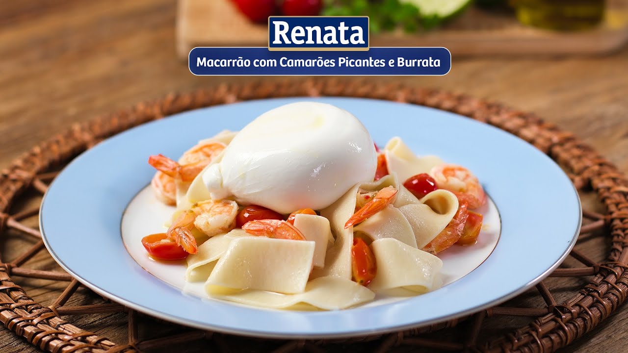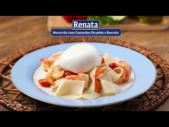 Receita de Macarrão Grano Duro com Camarões Picantes e Burrata.