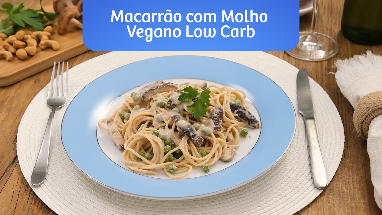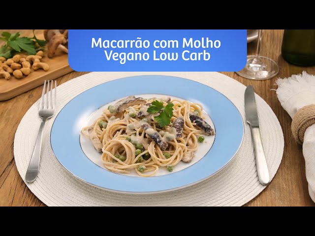 Macarrão Renata Veggie Protein+ Spaghetti com molho à base de castanha-de-caju com ervilha e shitake.