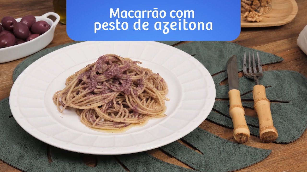 Macarrão com pesto de azeitona