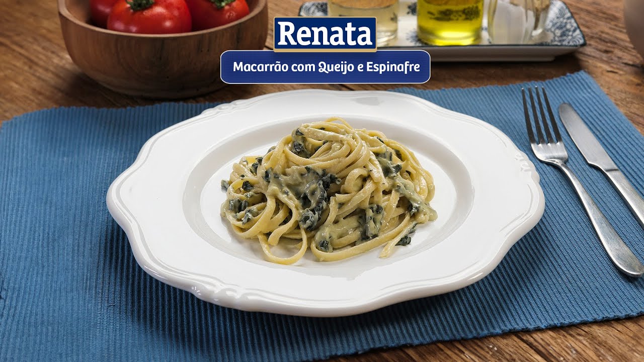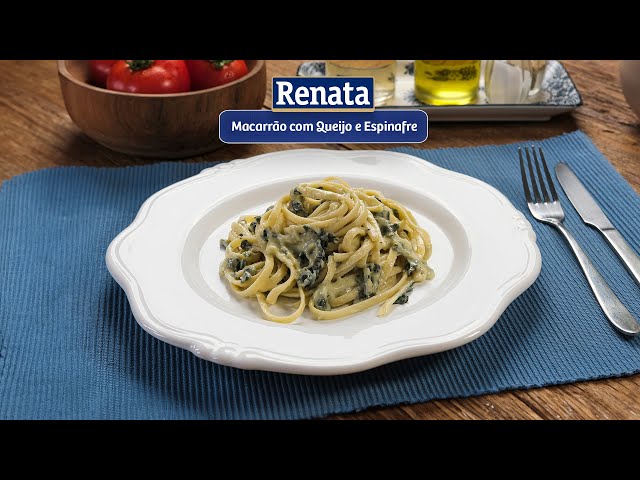 Macarrão Renata com queijo derretido e espinafre, criando uma combinação irresistível de sabores.