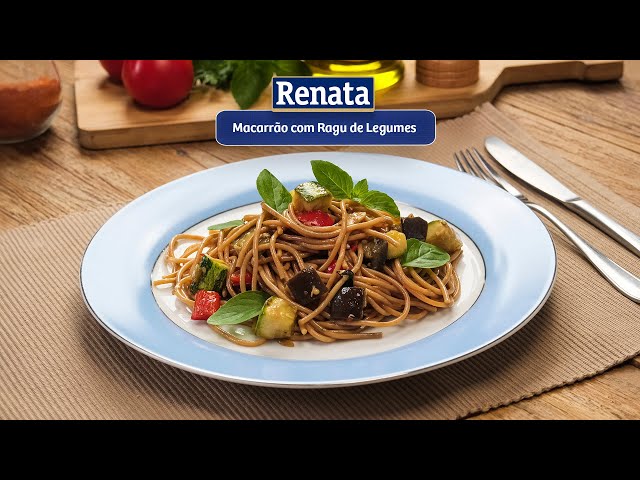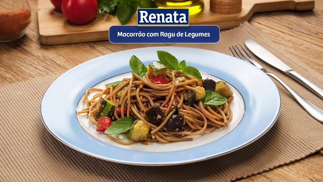 Um prato leve e saudável, ideal para quem deseja uma refeição rápida e nutritiva. O macarrão Renata Veggie Protein+ Spaghetti é servido com um saboroso ragu de legumes, incluindo abobrinha, berinjela e pimentão, temperados com azeite, alho e pimenta-calabresa.