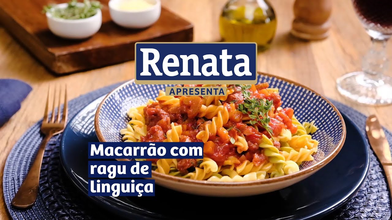 Macarrão Fusilli Tricolori Renata Superiori ao molho lento de tomates com linguiça.