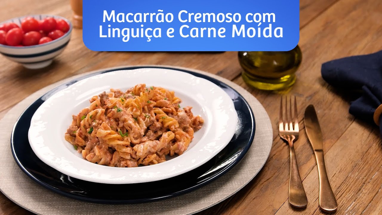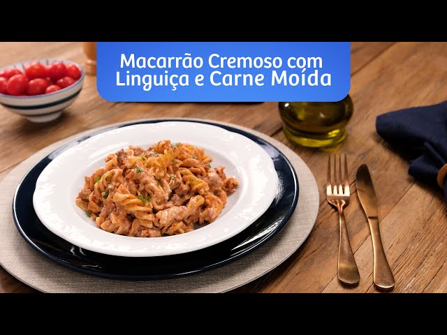 Macarrão Cremoso com Linguiça Toscana e Carne Moída