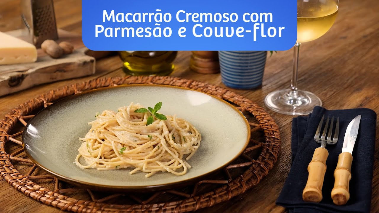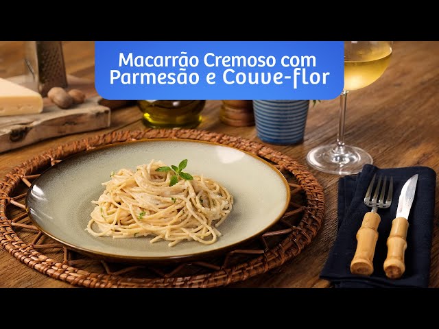 Macarrão com Parmesão e Couve-flor, cremoso e saboroso com Macarrão RENATA Veggie Protein+.