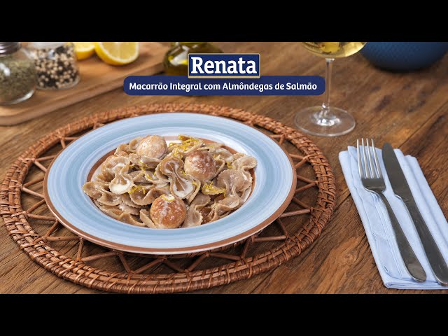 Receita de Macarrão Integral com Almôndegas de Salmão, preparada com Macarrão Renata Superiore Integrale Farfalle.