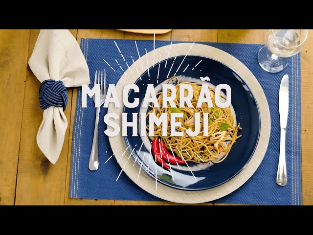 Macarrão integral com shimeji, tomate e ervas