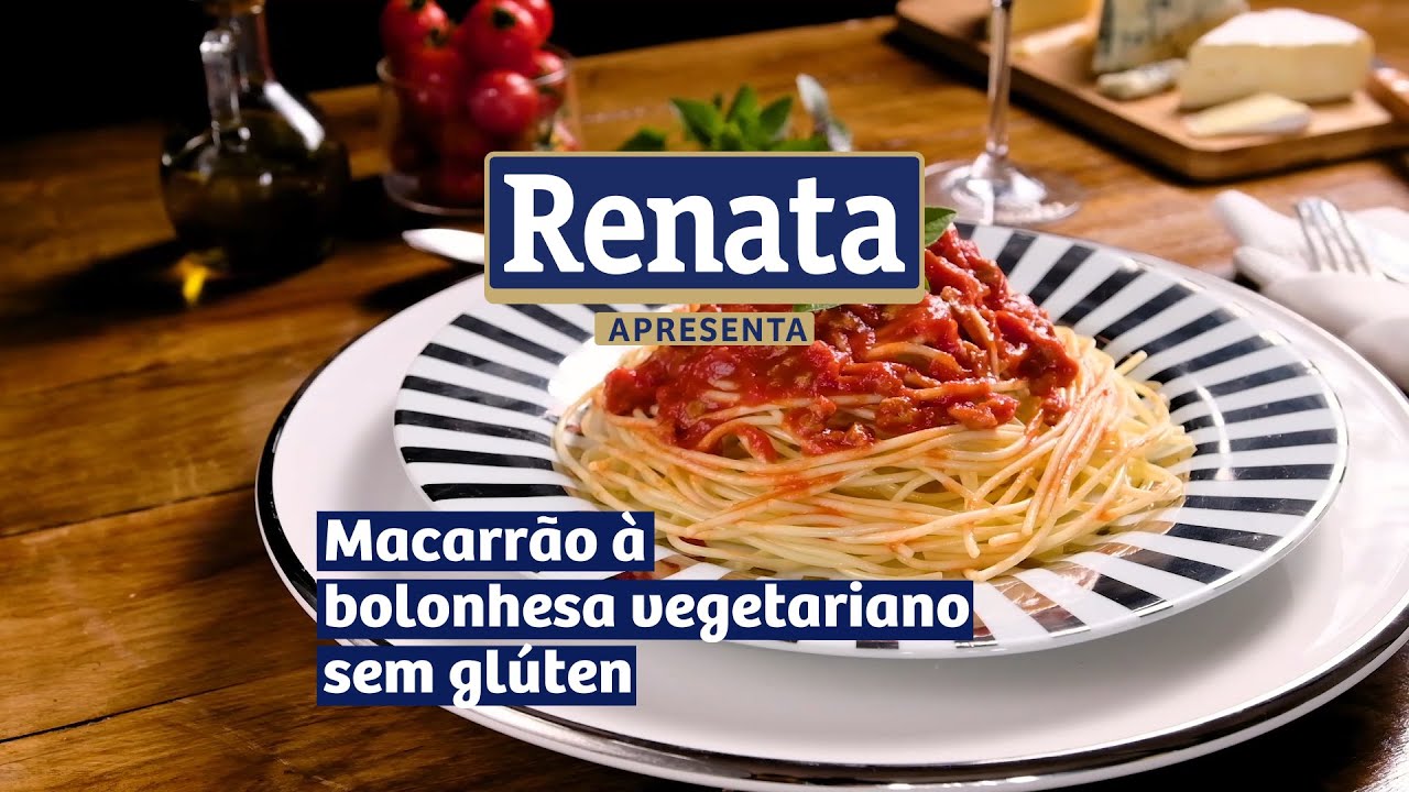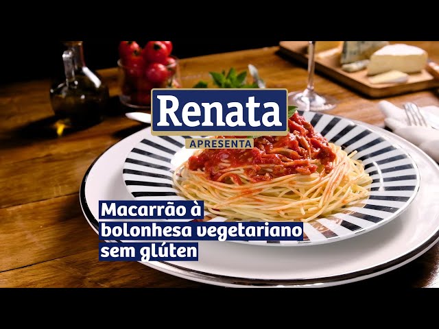 Macarrão RENATA Sem Glúten tipo Espaguete ao Molho Vegetariano de Carne de Soja e Finalizado com Manjericão.