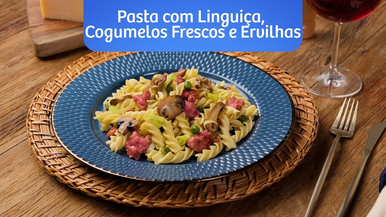 Pasta com Linguiça, Cogumelos Frescos e Ervilhas