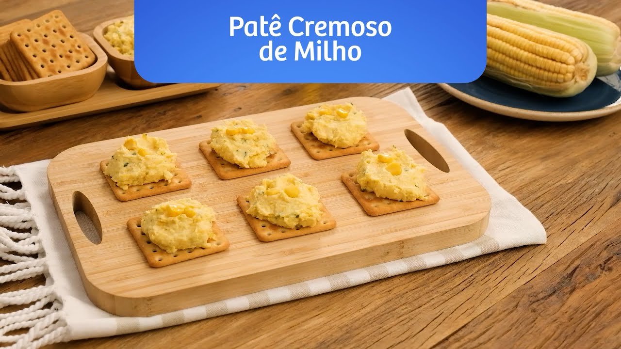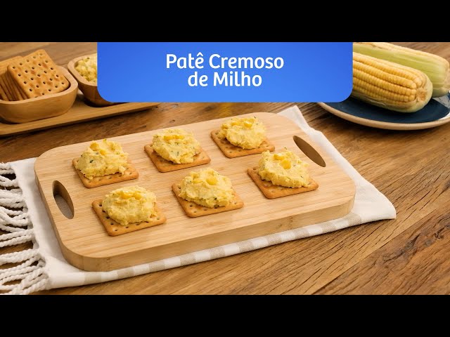 Patê à base de milho, leite e requeijão cremoso, para ser servido com Biscoito RENATA Cracker Fermentação Natural.