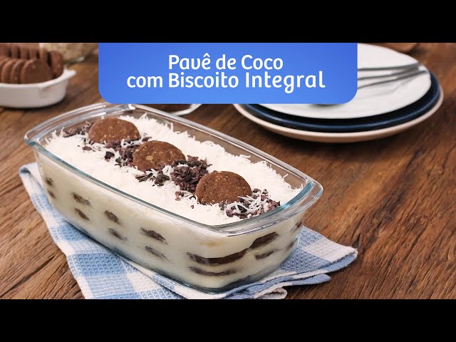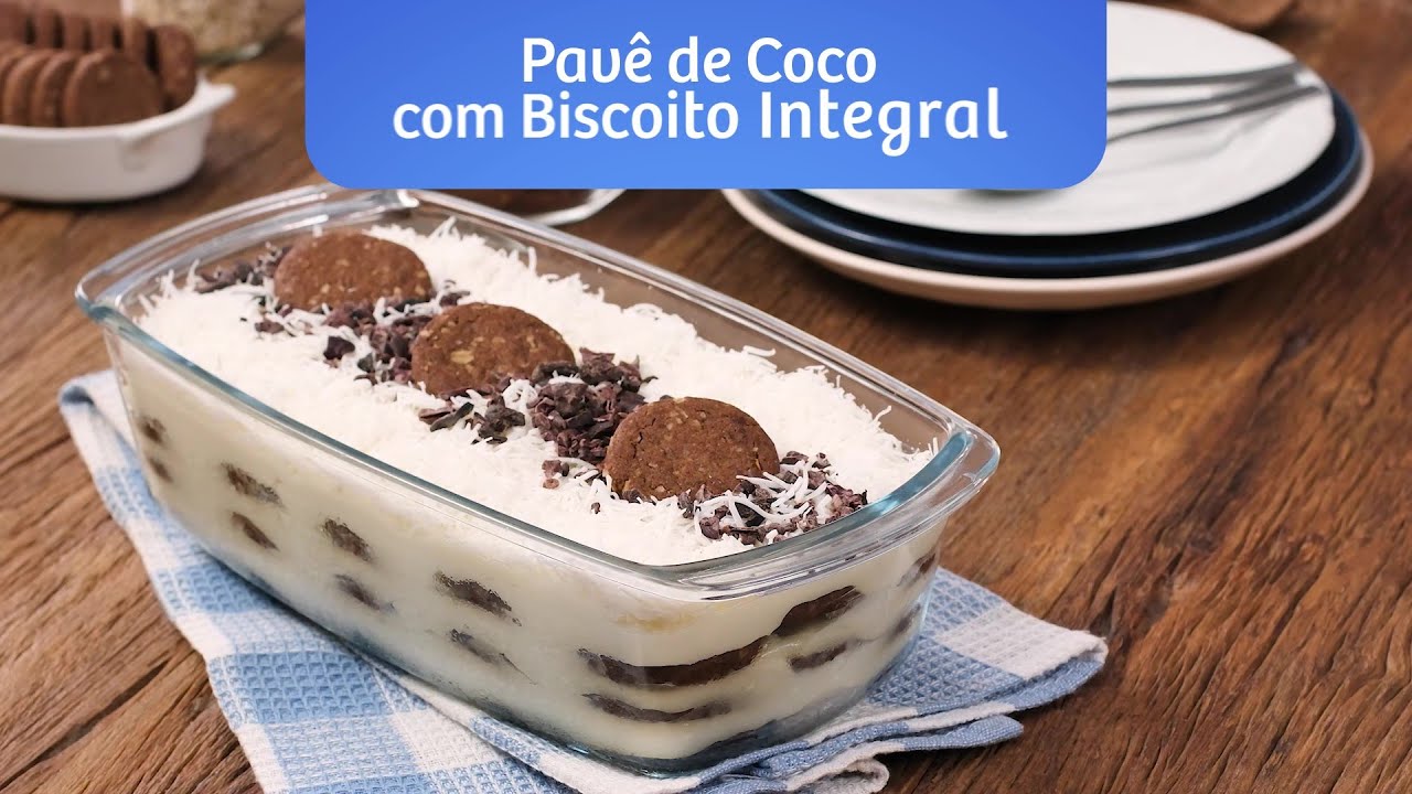 Pavê de Coco com Biscoito RENATA Integrale Cacau e Aveia.