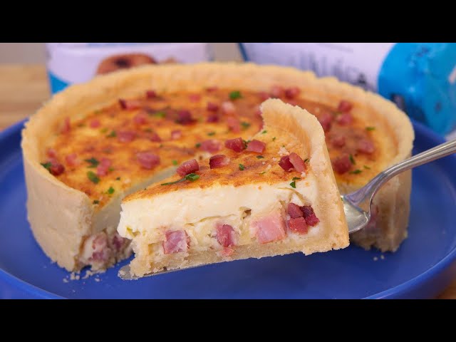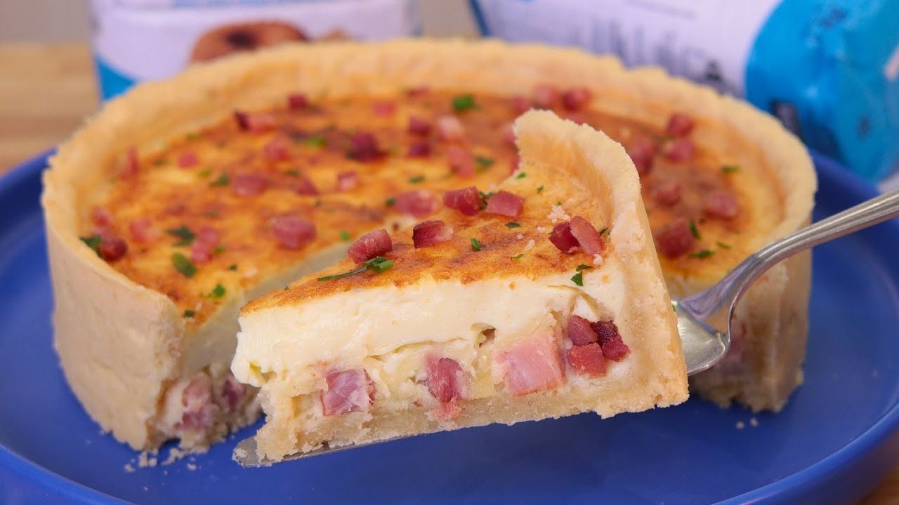 Receita fácil de Quiche Lorraine de Queijo e Bacon com massa crocante e recheio cremoso.