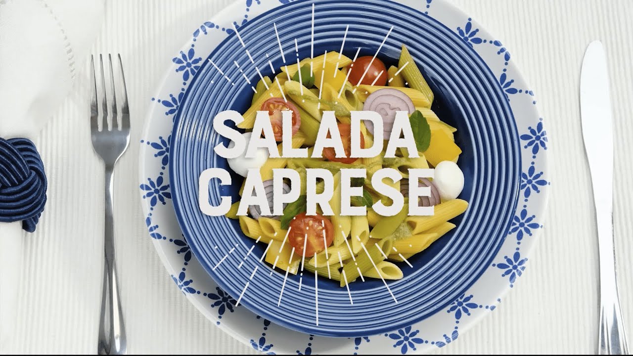 Salada com Macarrão Tricolori RENATA Superiore Tipo Penne com Muçarela de Búfala e Tomates.