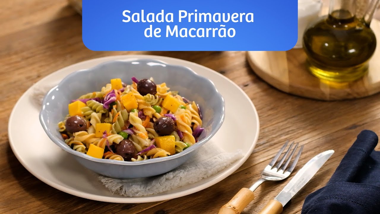 Macarrão Renata Fusilli com legumes e manga. Finalizado com azeite Renata e limão.