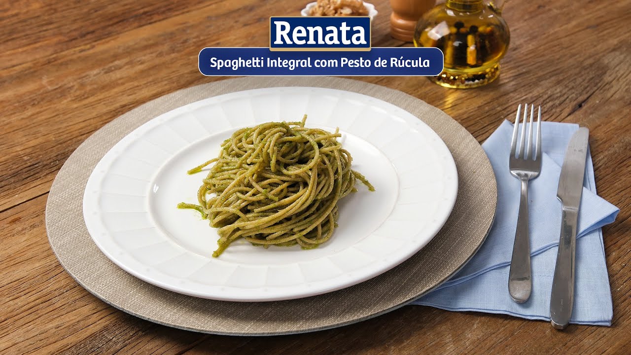 Receita de Macarrão Spaghetti Integral com Pesto de Rúcula