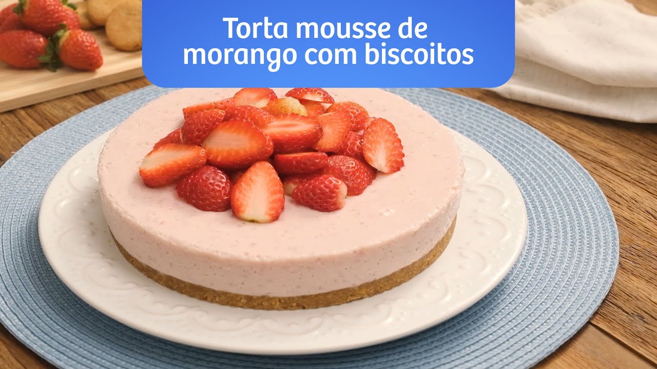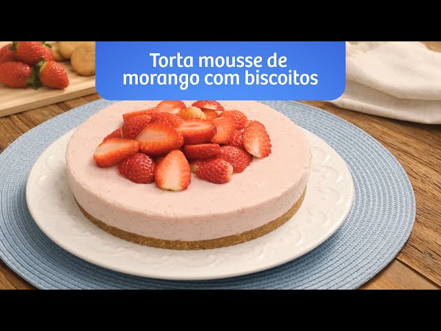 Torta mousse de morango com biscoitos RENATA Integrale sabor Morango.